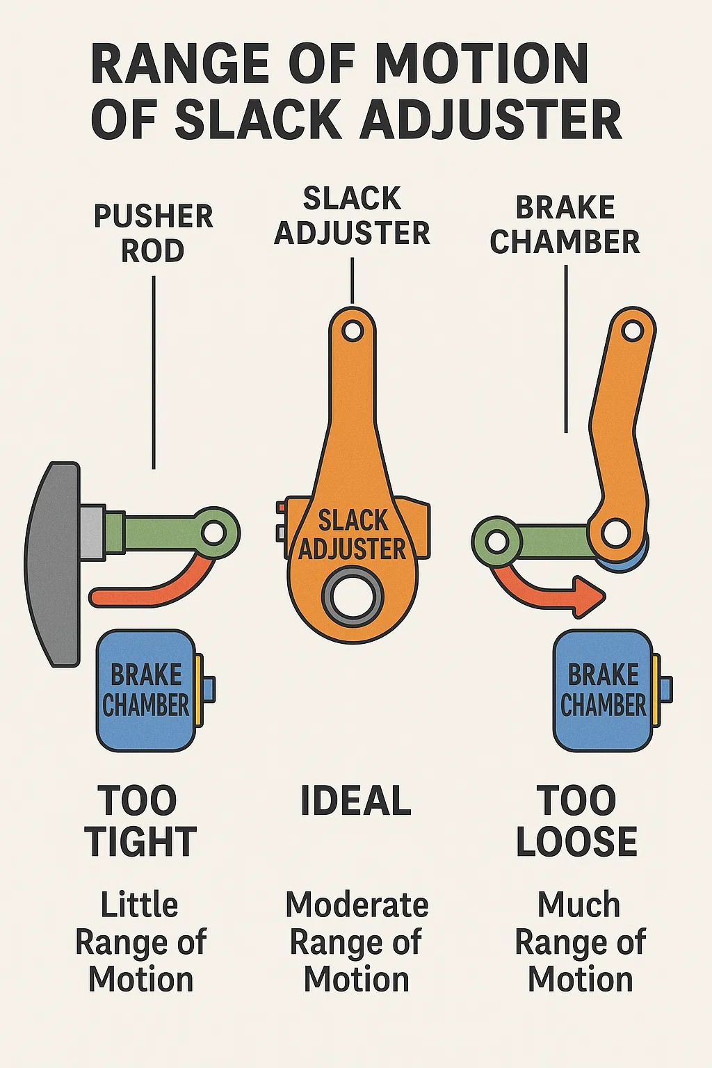 The ideal "range of motion" for the slack adjuster should be a stable and moderate range.