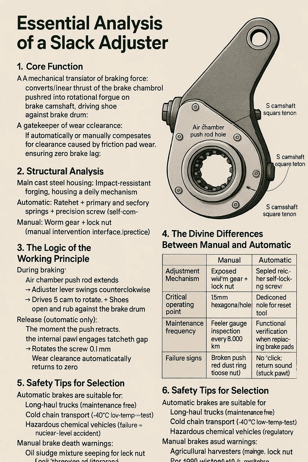 A mechanical translator of braking force: It converts the linear thrust of the brake chamber pushrod into rotational torque on the brake camshaft, driving the shoe against the brake drum.